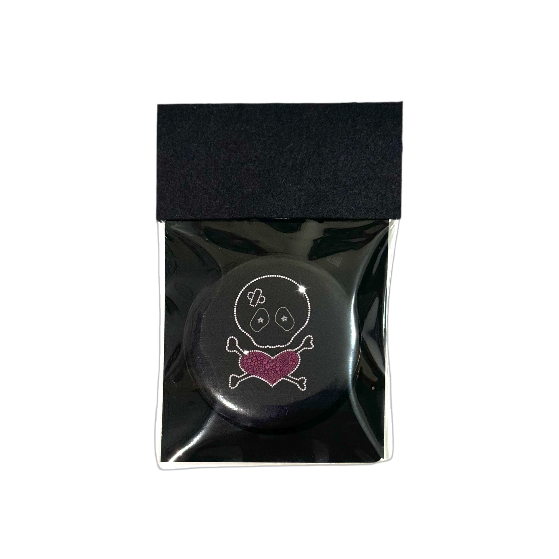 Add a touch of edginess to your outfit with our SKULL N BONES PIN BADGE. Measuring 44mm, this pin is made with an aluminium back and features an original skull and crossbones design in a rhinestone bedazzle print. Perfect for those with a scene or emo style, or those reminiscing about the MySpace days.